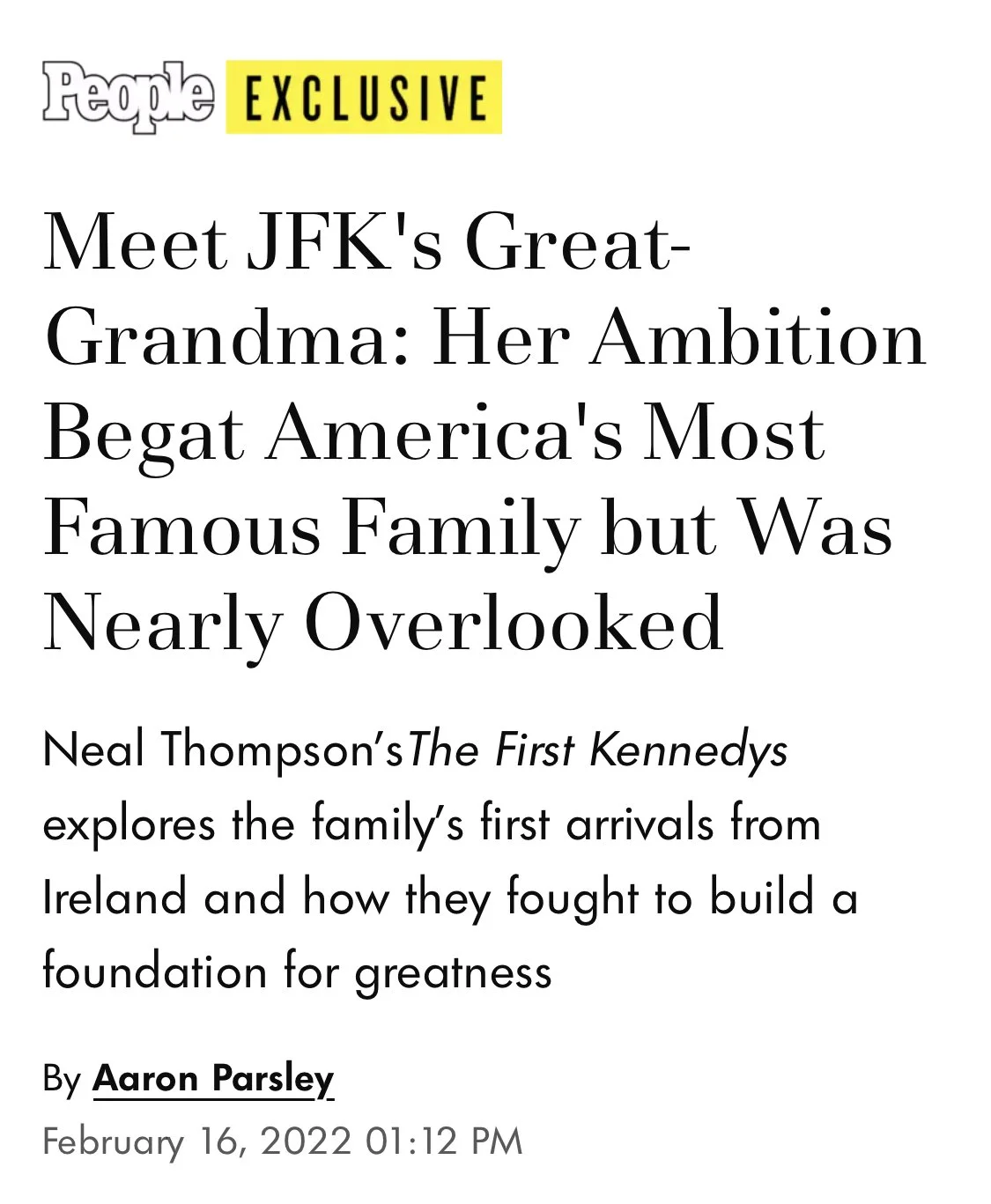 Interview with People. (“Meet JFK's Great-Grandma: Her Ambition Begat America's Most Famous Family but Was Nearly Overlooked”) - plus a story about JFK pretending to smoke grandpa P.J.’s cigar.